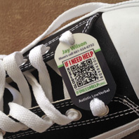 If I Need Help labels are QR code labels that can be applied to clothing or personal items which then contain personal information that allows someone who cannot communicate traditionally to provide necessary information to others.